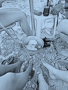 “Enfim, pé na areia, guarda-sol, balde de cerveja com gelo e barulho de ondas.”